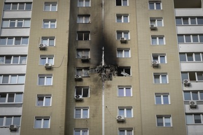 A view of the damaged apartment in a multi-storey house after Russia's…