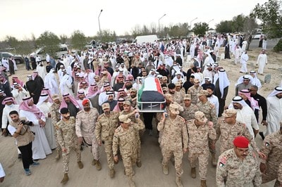 Kuwait honors the two Navy servicemen Sergeant Waleed Majeed Suleiman and Sergeant Abdulaziz Abdulmohsen Dakhel Nasser. The two martyrs were given a solemn military funeral procession with a large number of mourners in attendance.