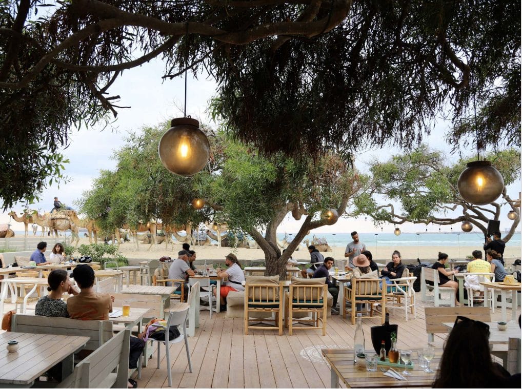 Ocean Vegabond restaurant in Essaouira is located directly on the beach, about a 20-minute walk from the Essaouira Medina. They often have live music and a relaxed coastal atmosphere. It’s a pleasant place to celebrate New Year’s Eve Essaouira, looking at the ocean and watching camels walk along the shoreline. Their food menu is simple (not for a fancy dinner), but I love the atmosphere, the location and vibes. They often have live music even on normal weekends, so you head there to relax and have fun.